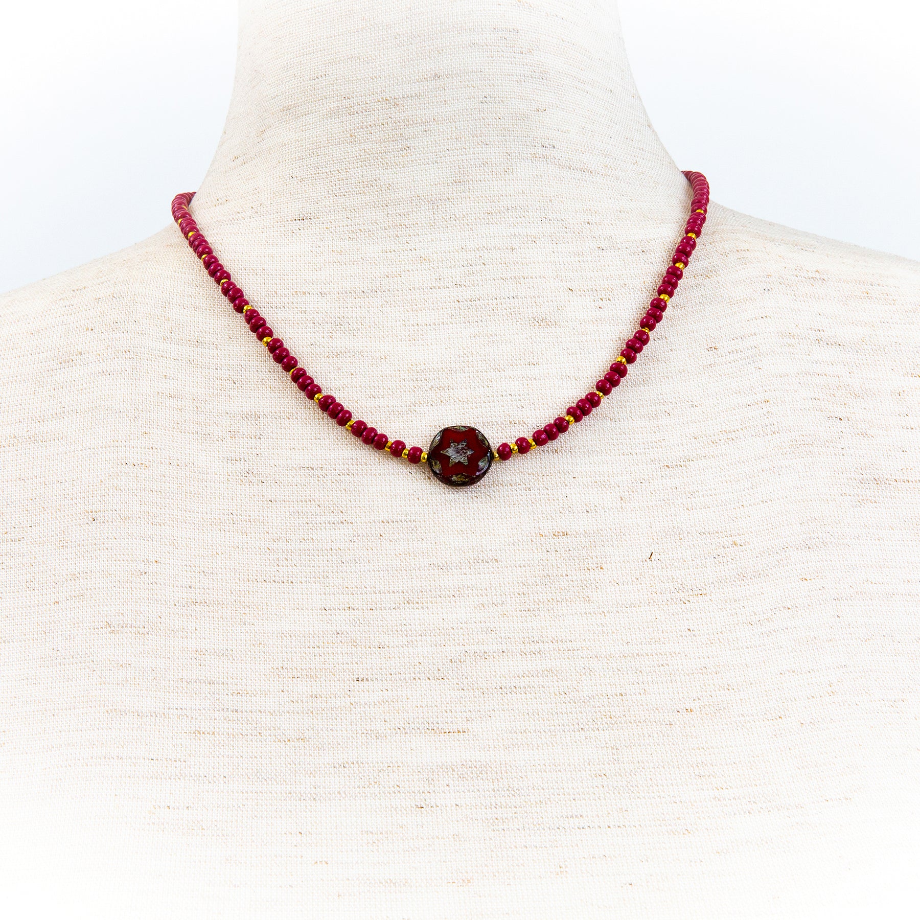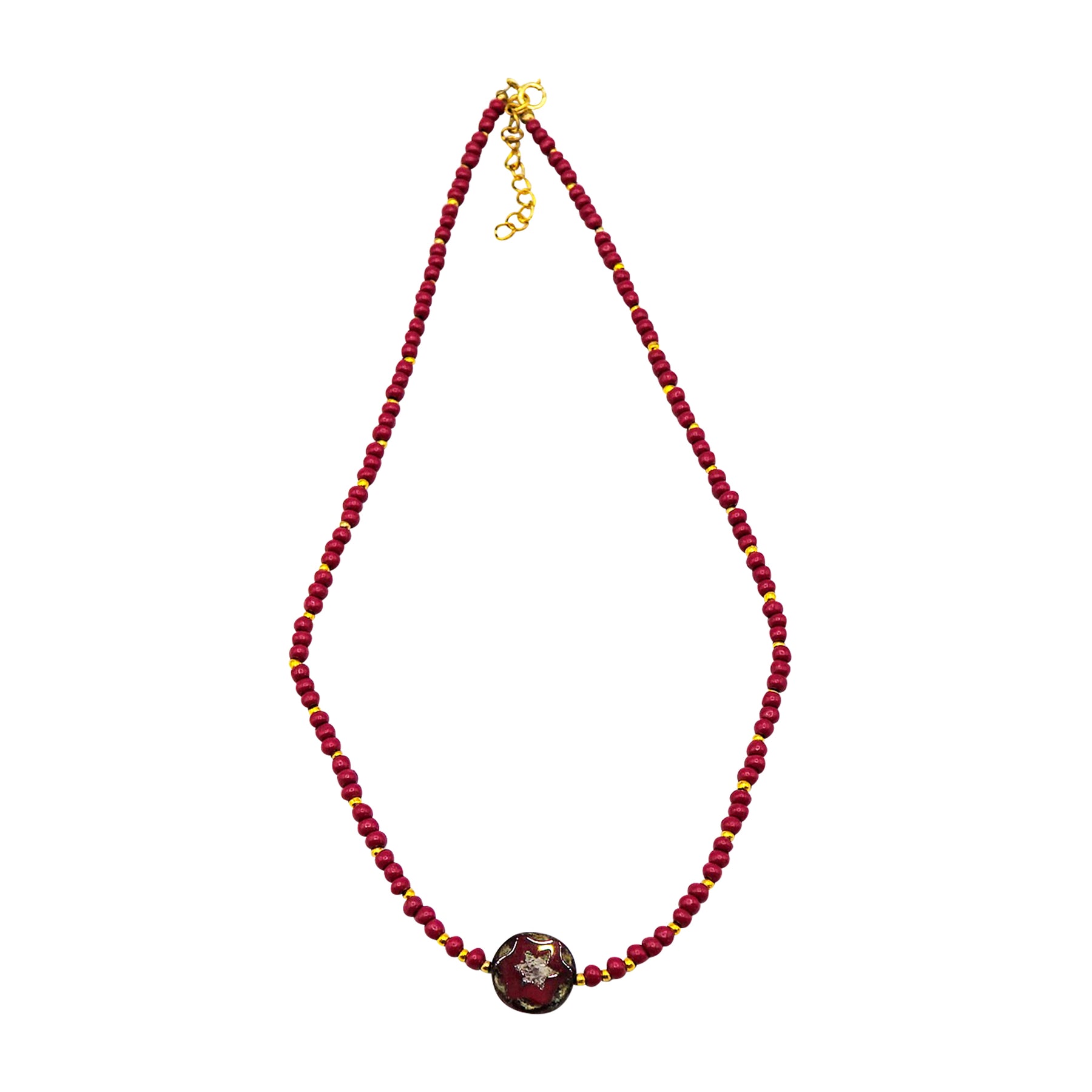 Crimson and Gold Necklace with Star