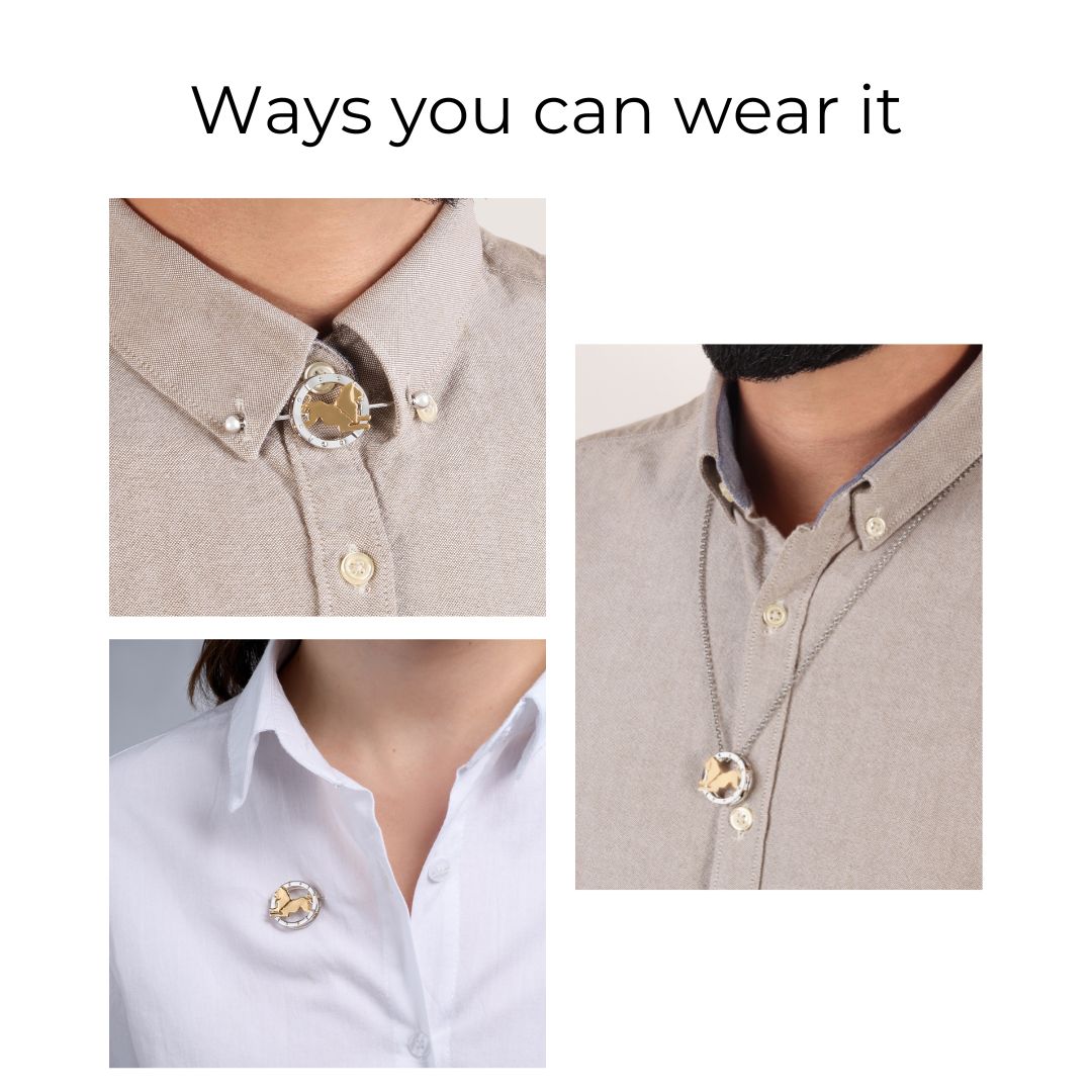 This piece of jewelry was created by a Dutch sculptor and an Israeli jewelry designer. The Lion of Judah, symbolic of Israel’s Jewish heritage, was created as a zinc and copper sculpture, by Peter Wortel in 2011, for an open-air exhibition in Holland.