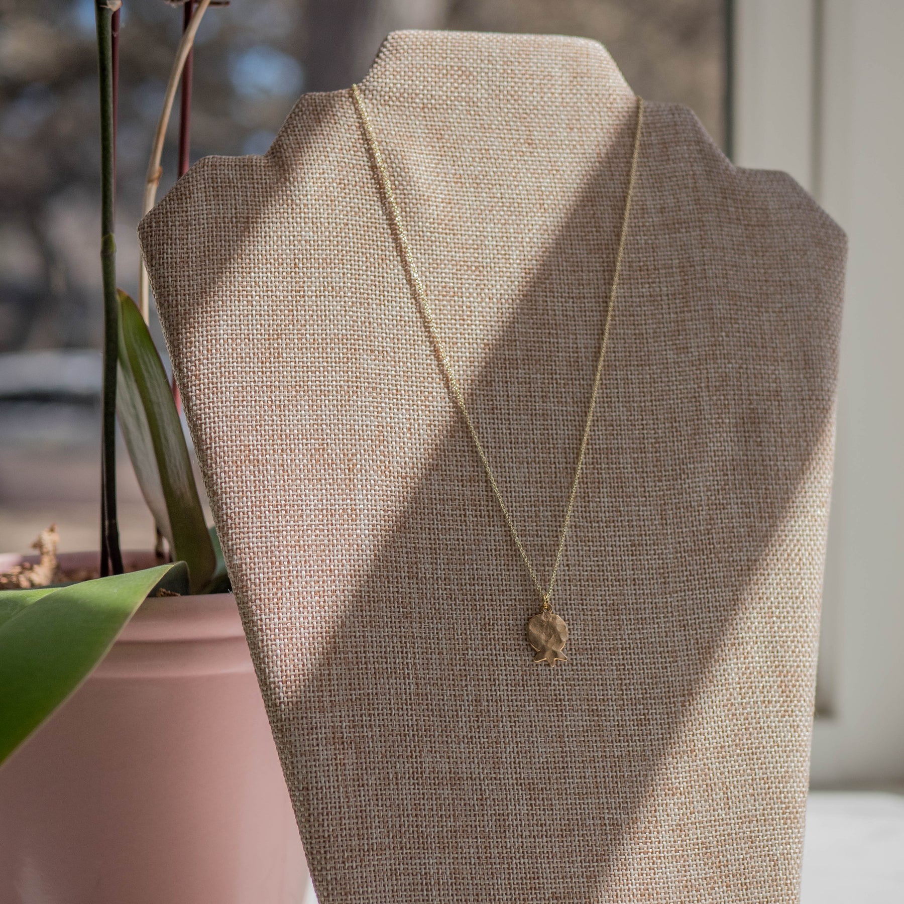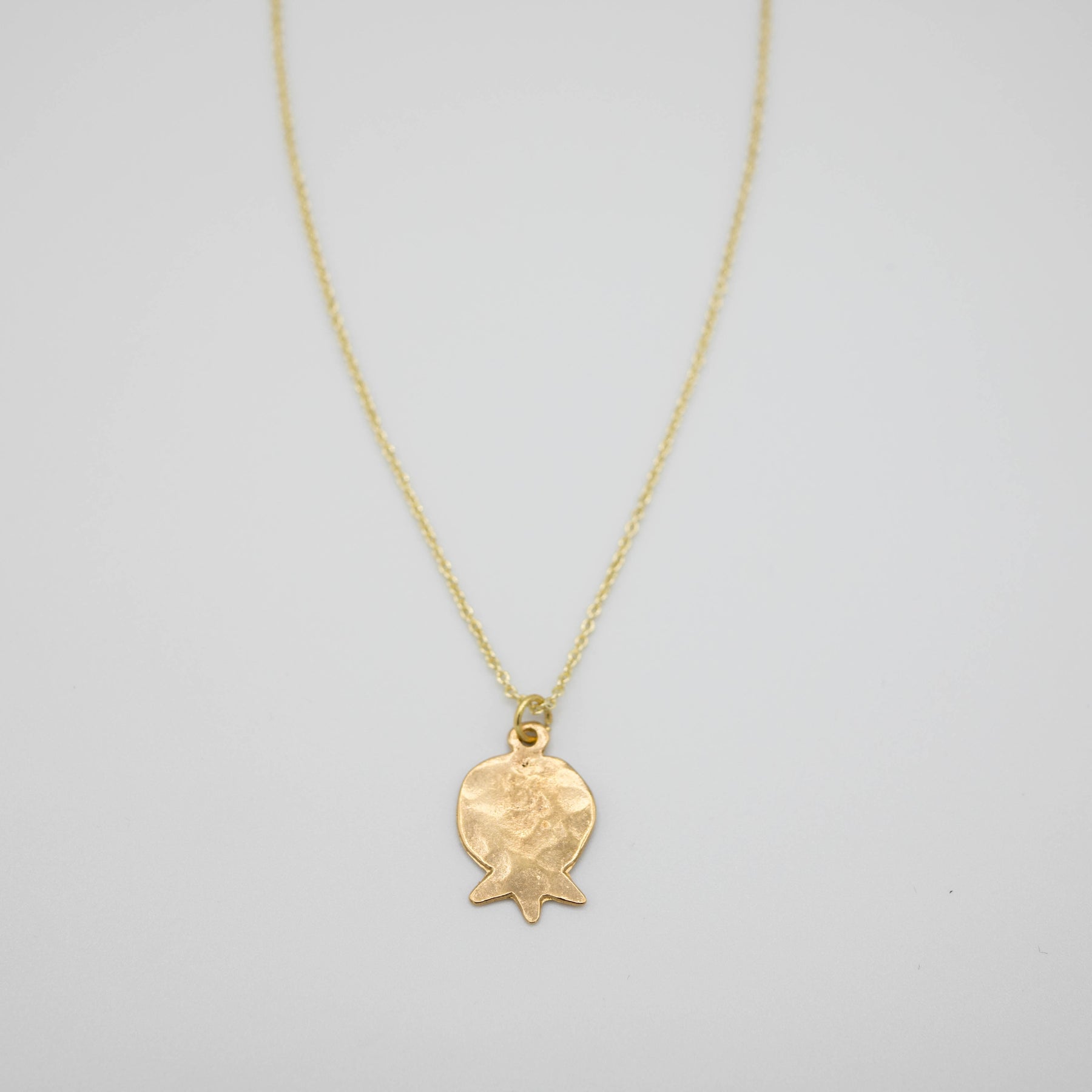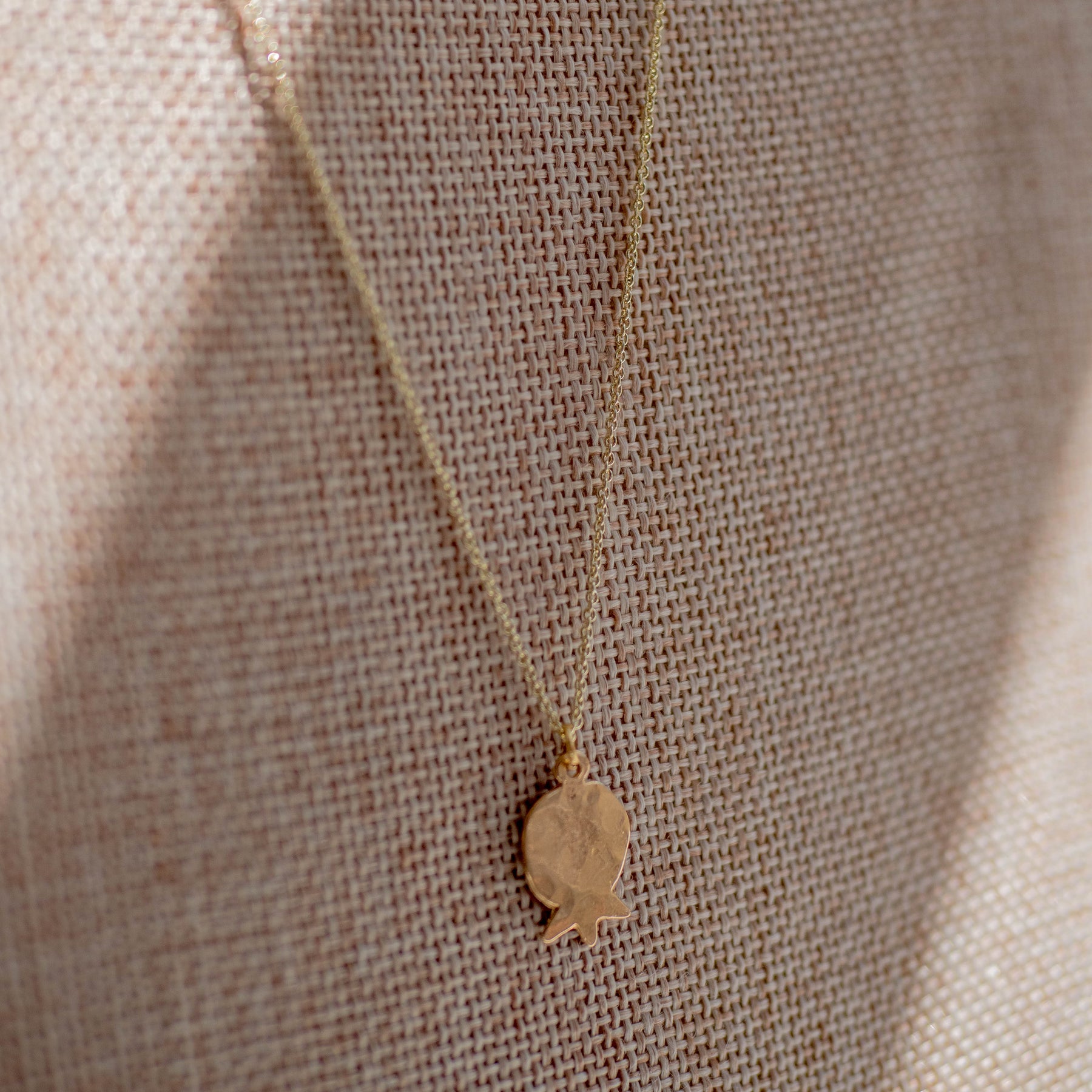 Gold filled hammered down pomegranate pendant on a gold plated chain